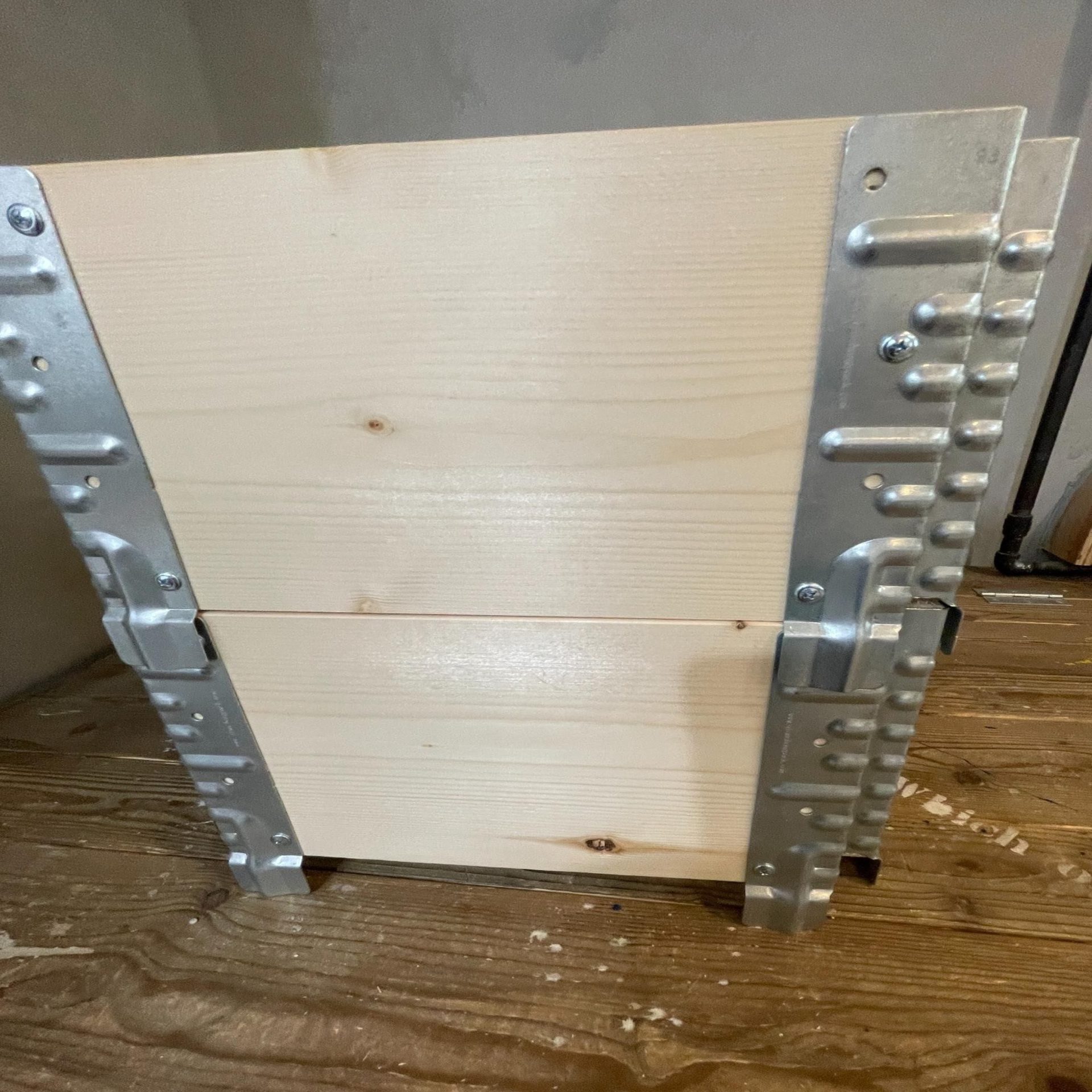 4箇所の角に取り付けることで、シンプルな木箱が一気にインダストリアルな表情へと変わります。
